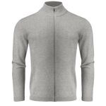 Knitted cardigan with metal zipper closure in center front.
